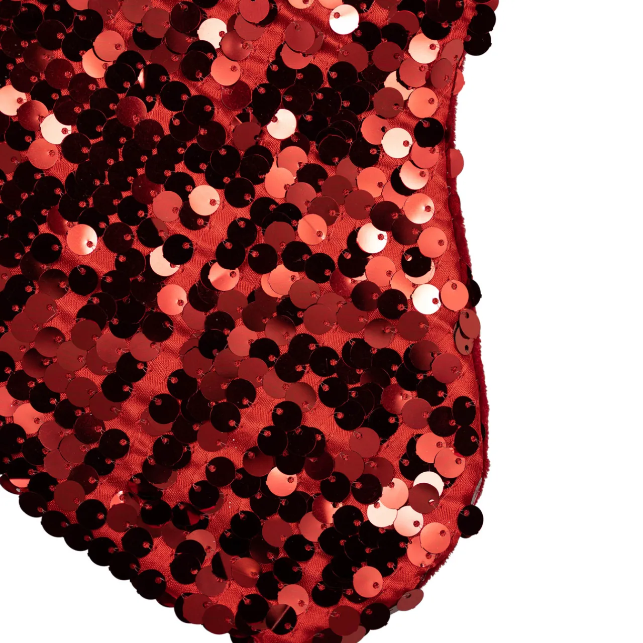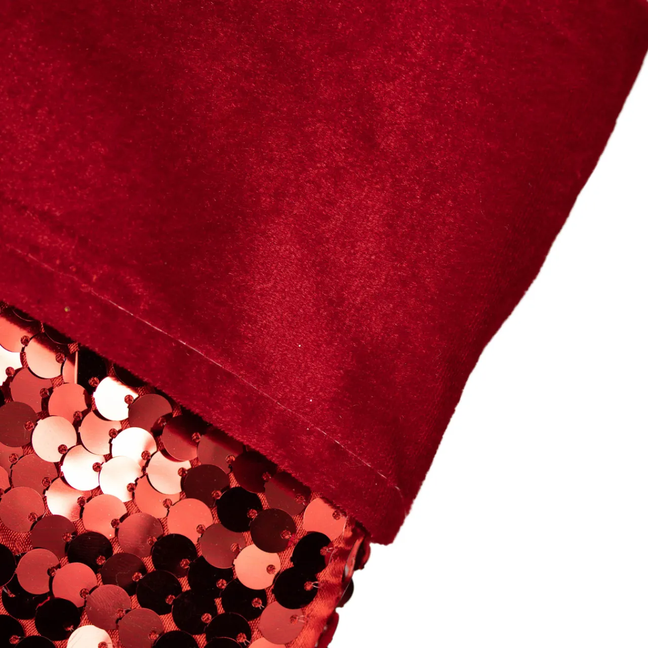 - Red Sequined Velveteen Cuff Christmas Stocking