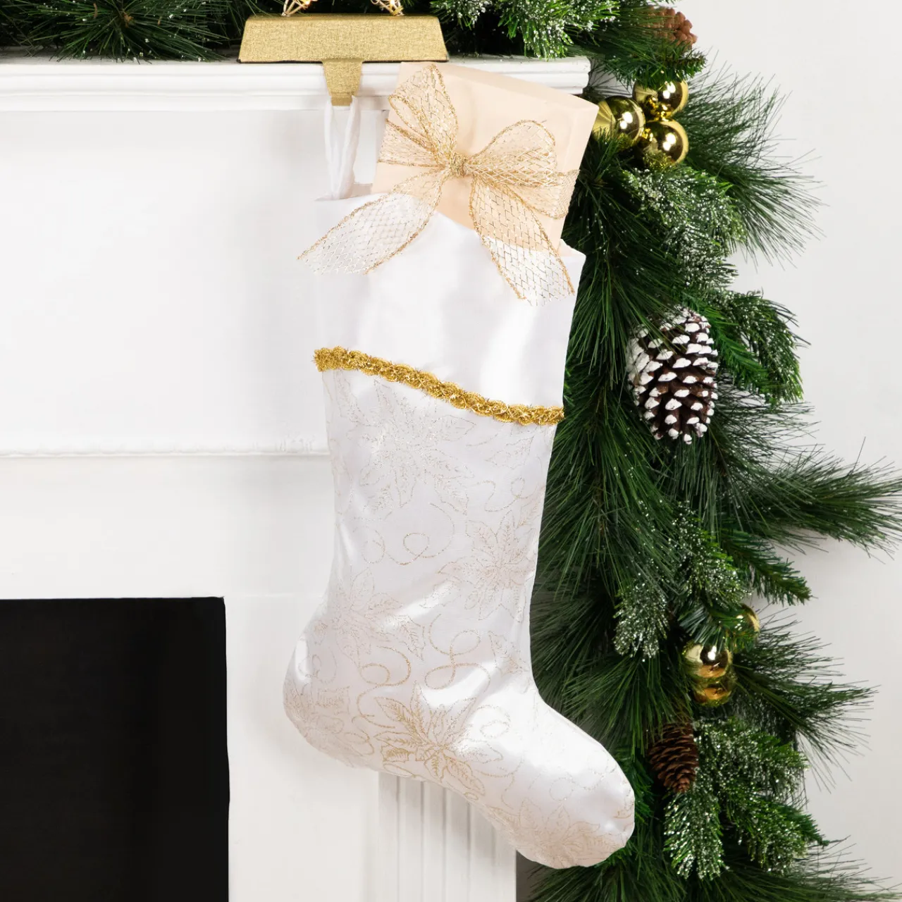 - Rich White And Gold Glitter Christmas Stocking