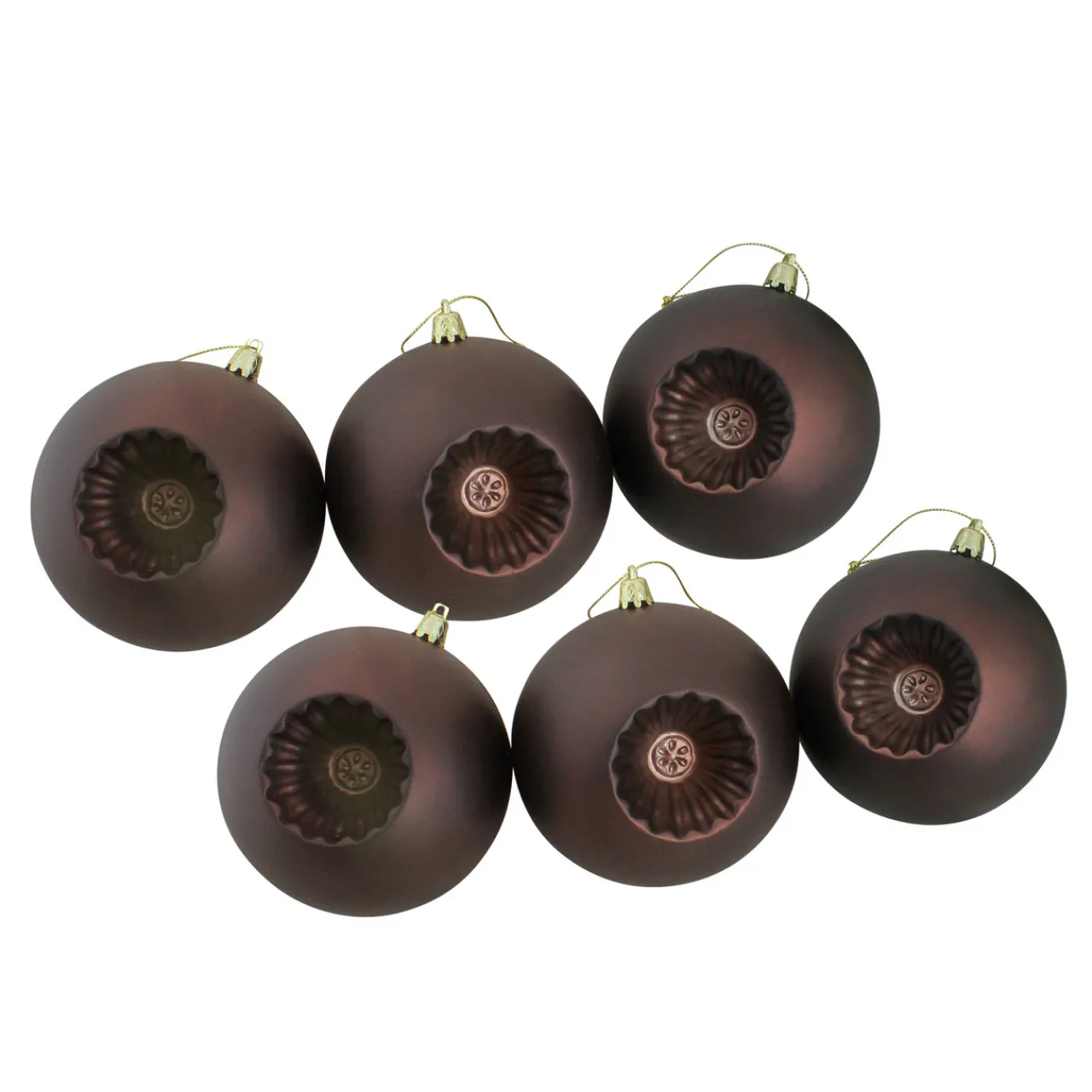 - 6 Count Matte Brown Retro Reflector Christmas Ball Ornaments