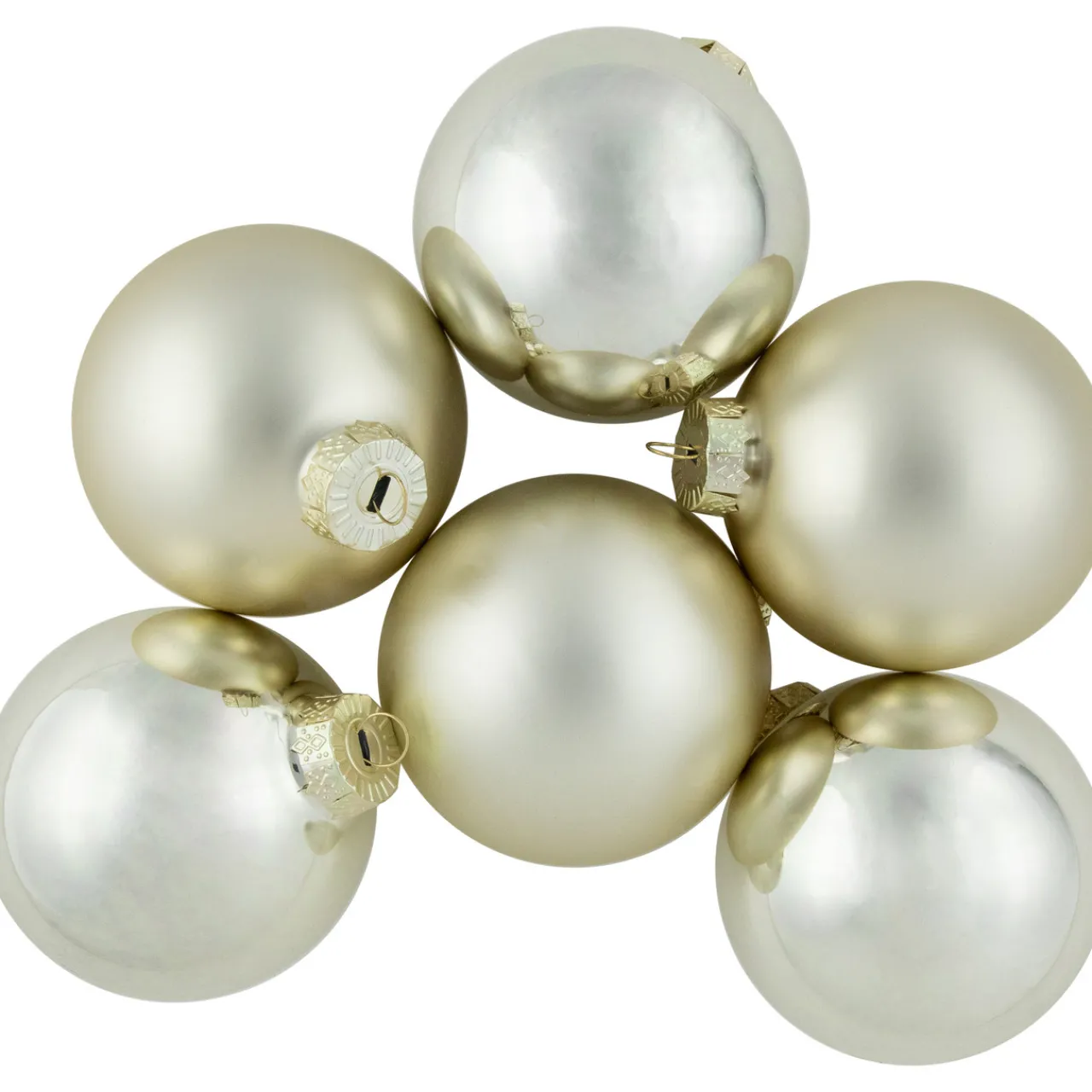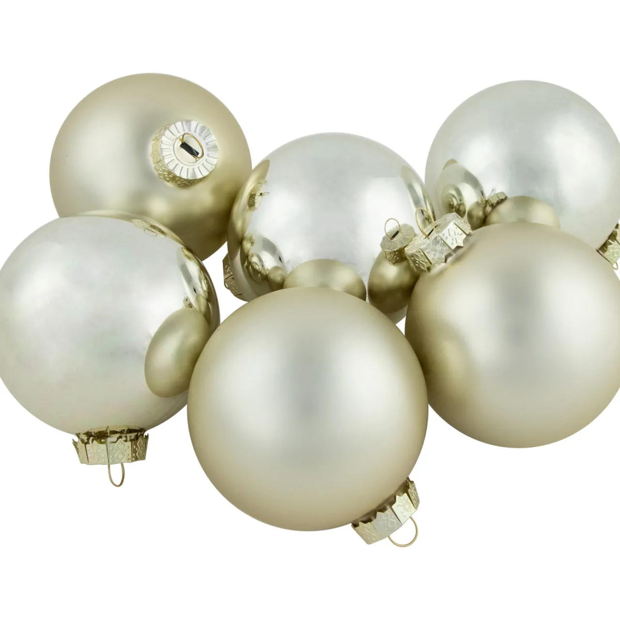 - The set includes 3 matte and 3 shiny ornaments