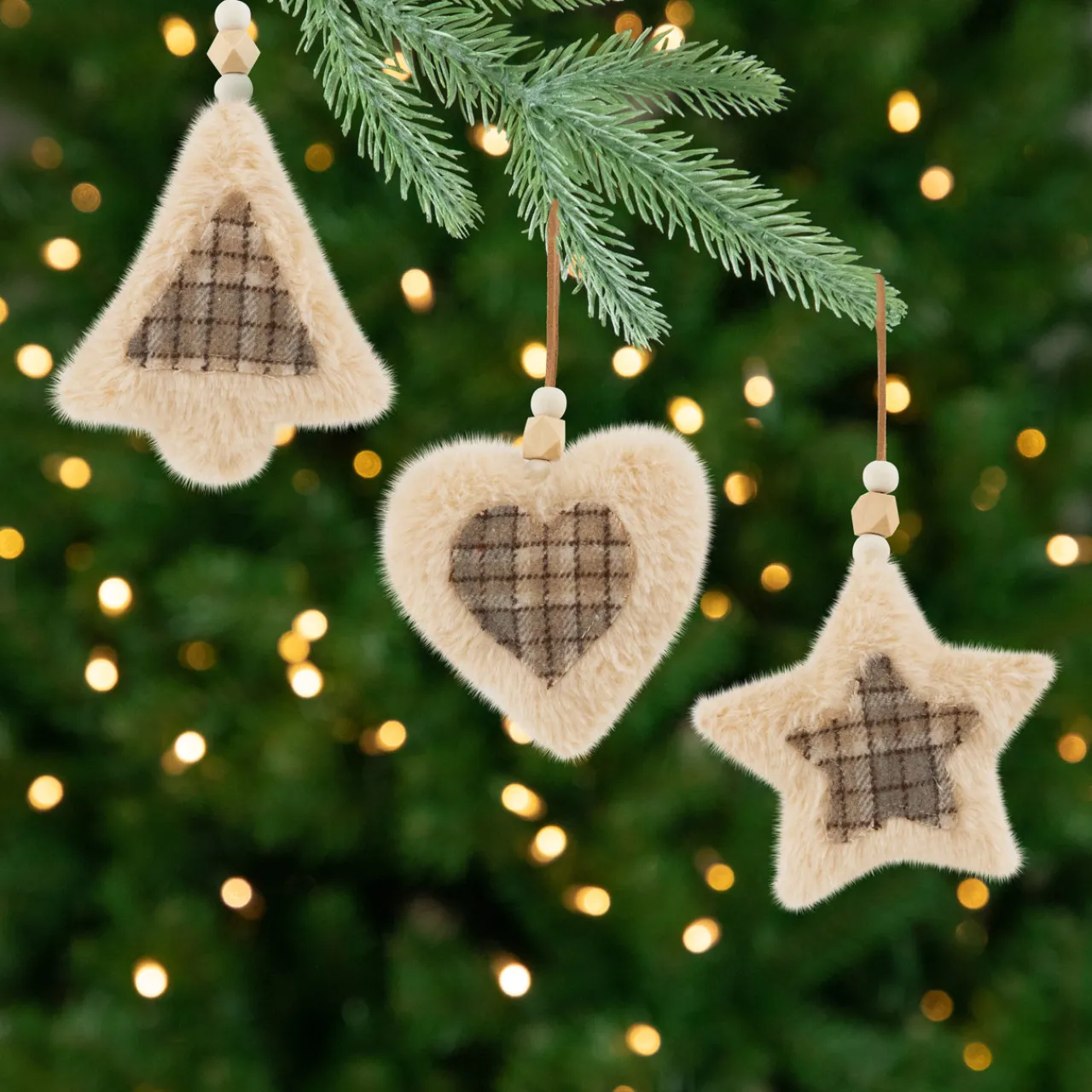 - Set Of 3 Rustic Plaid Christmas Ornaments