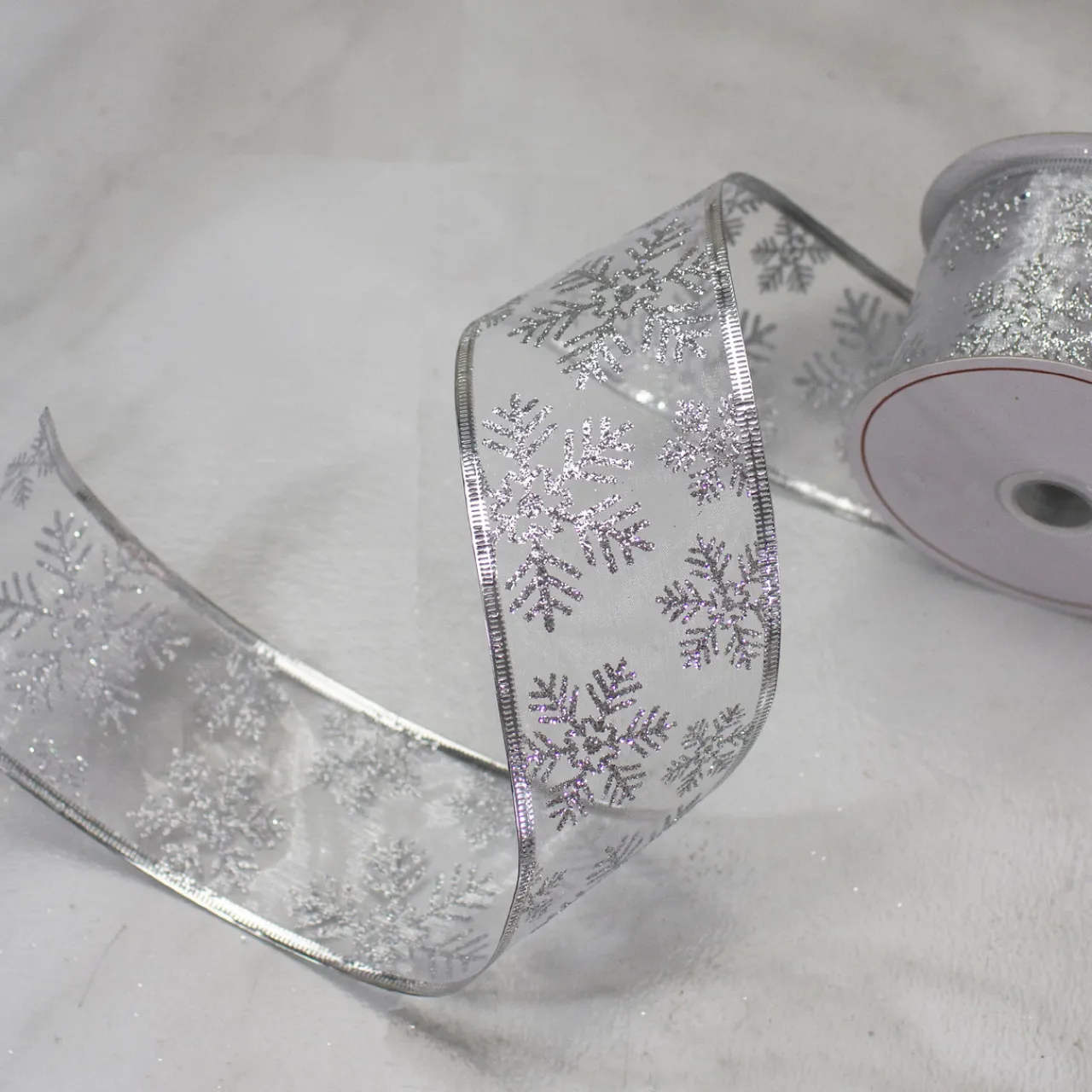 - Sheer Silver Snowflake Christmas Craft Ribbon
