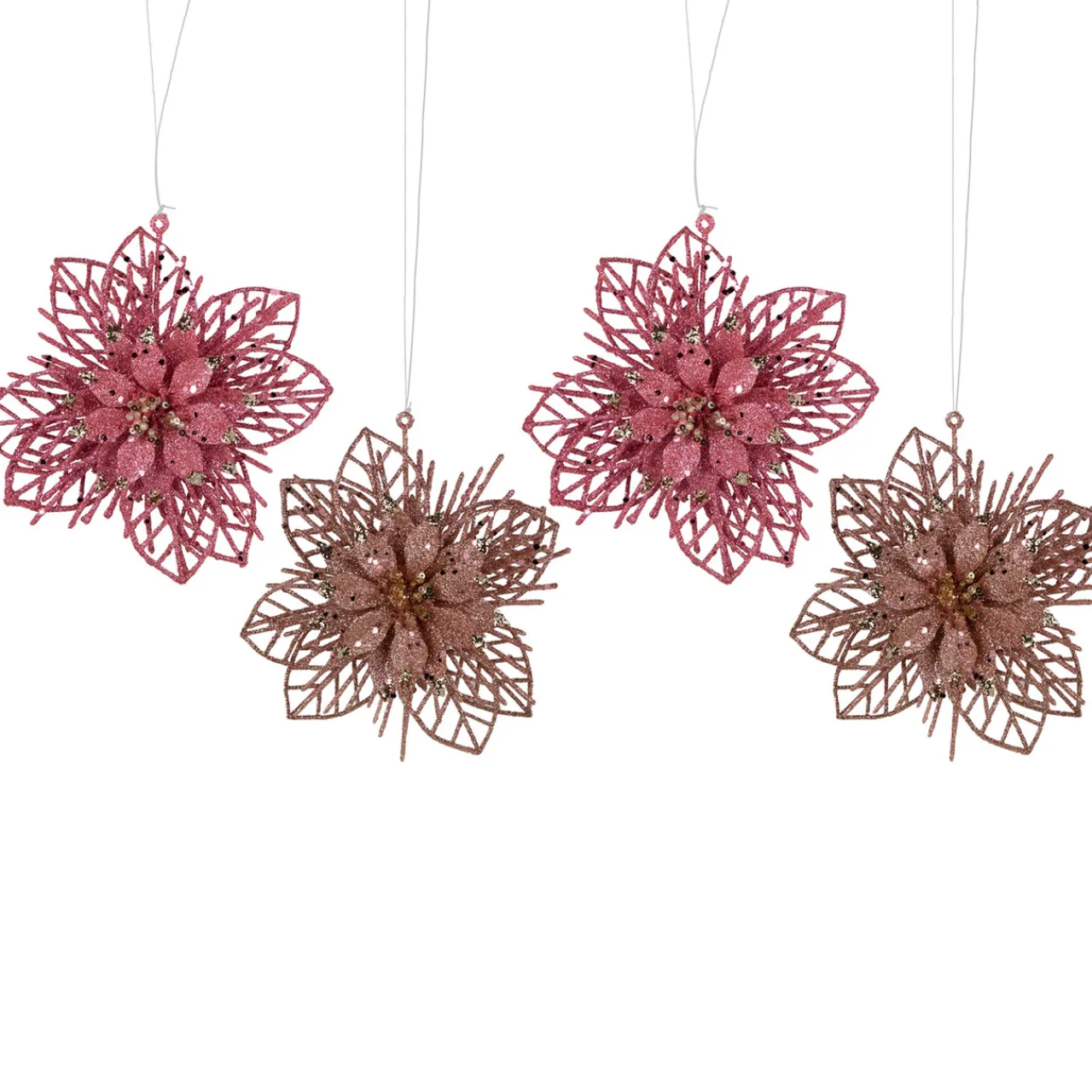- Pack Of 4 Poinsettia Christmas Ornaments