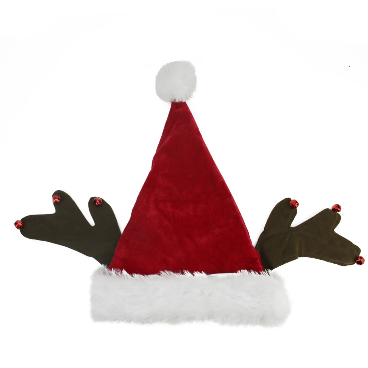 - Red And Brown Santa Hat With Reindeer Antlers For Adults