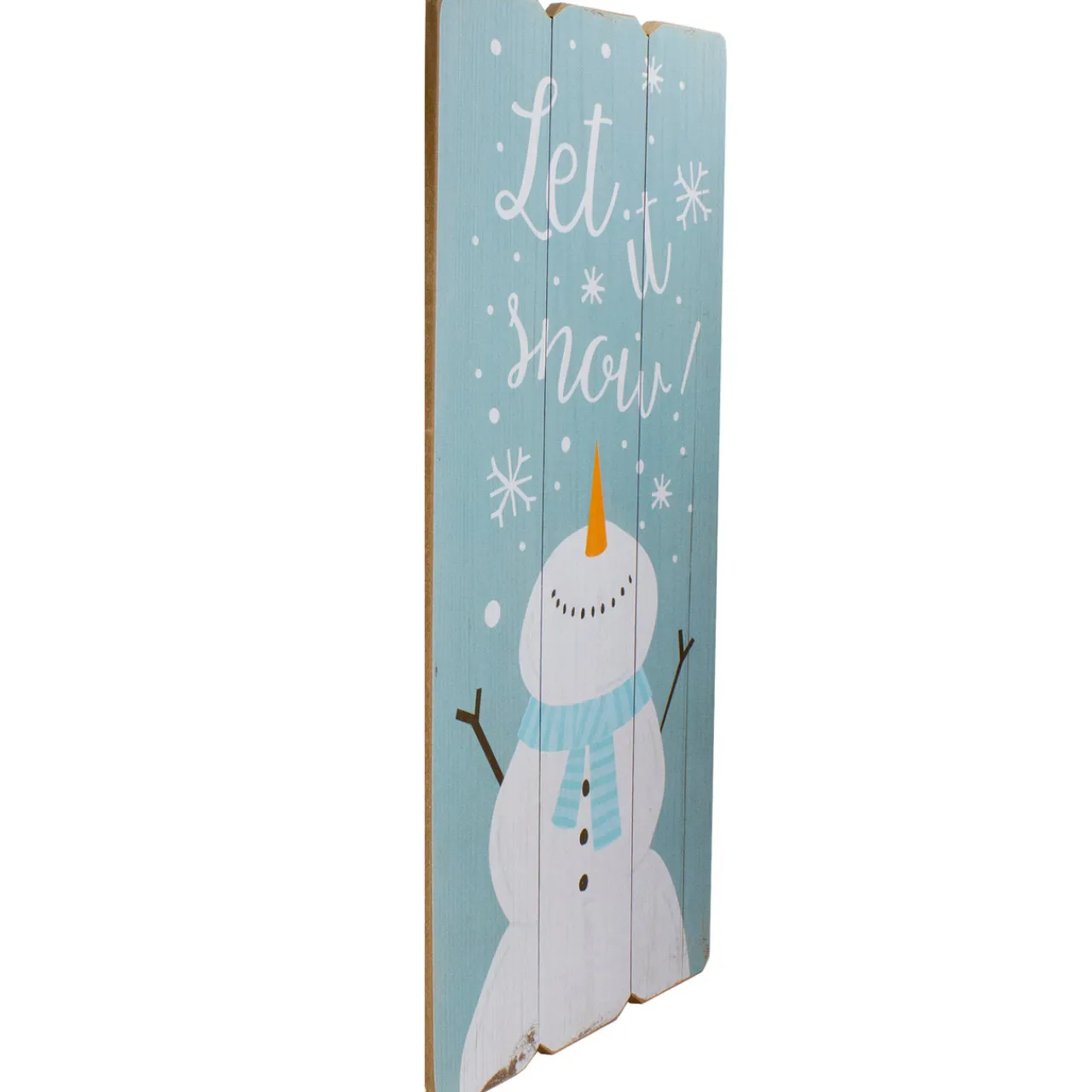 - Blue And White Snowman Wooden Christmas Wall Plaque