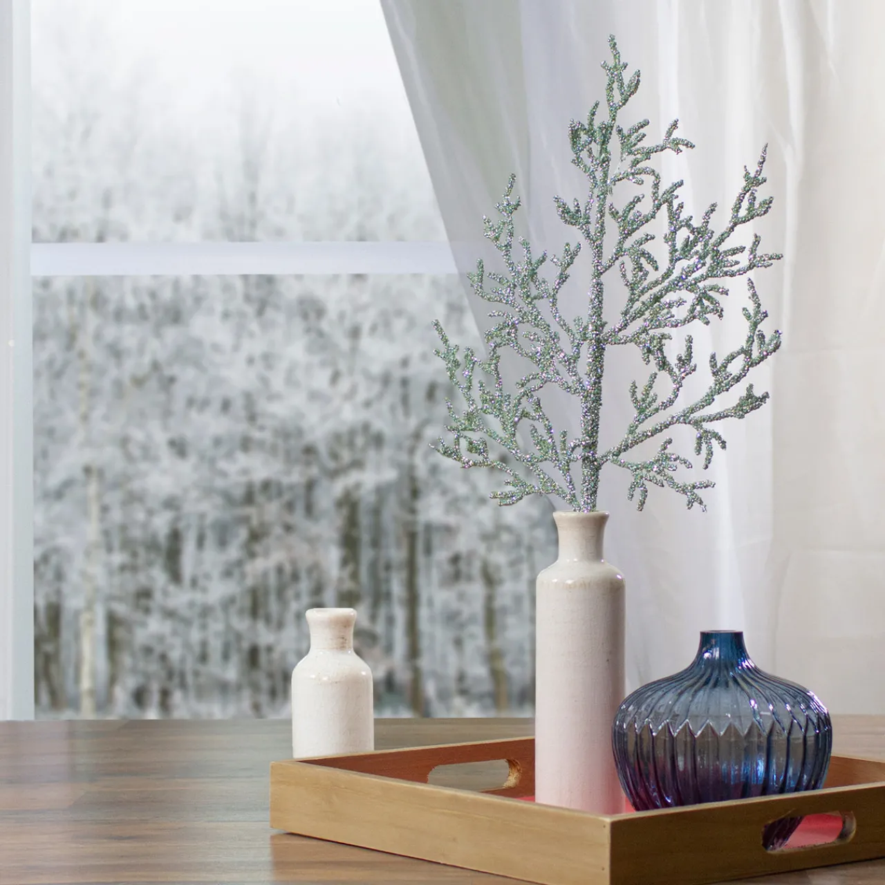 - Multiple branches with multi-colored green glitter