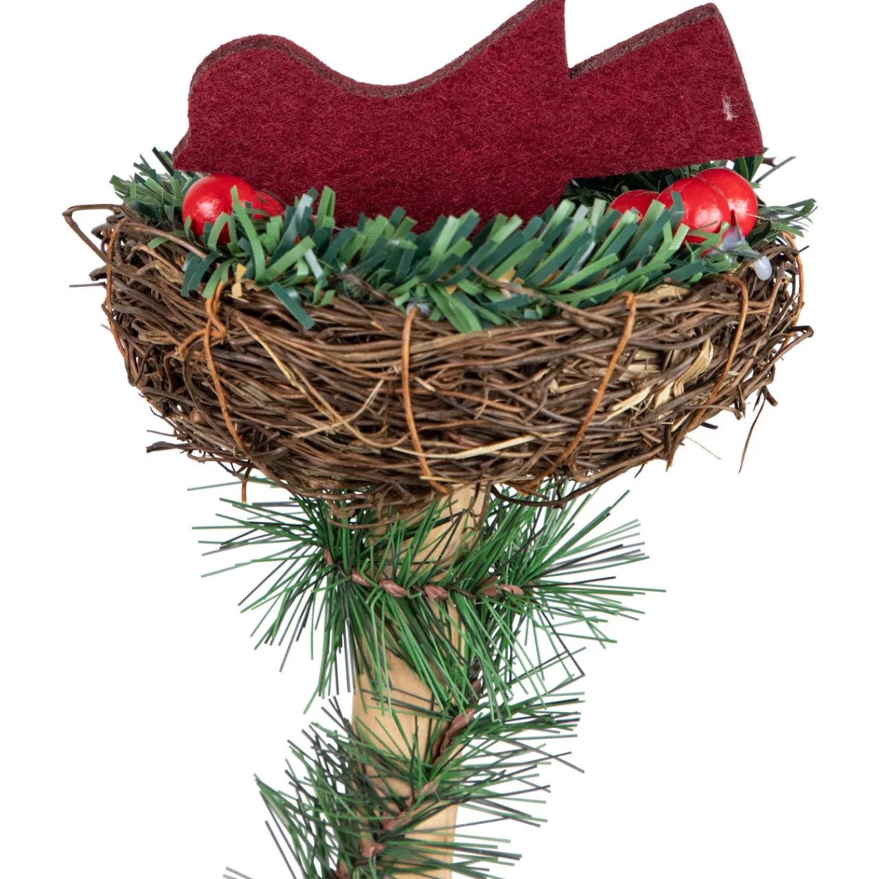 - Holding a staff with a birds nest on top and carrying a sack of gifts