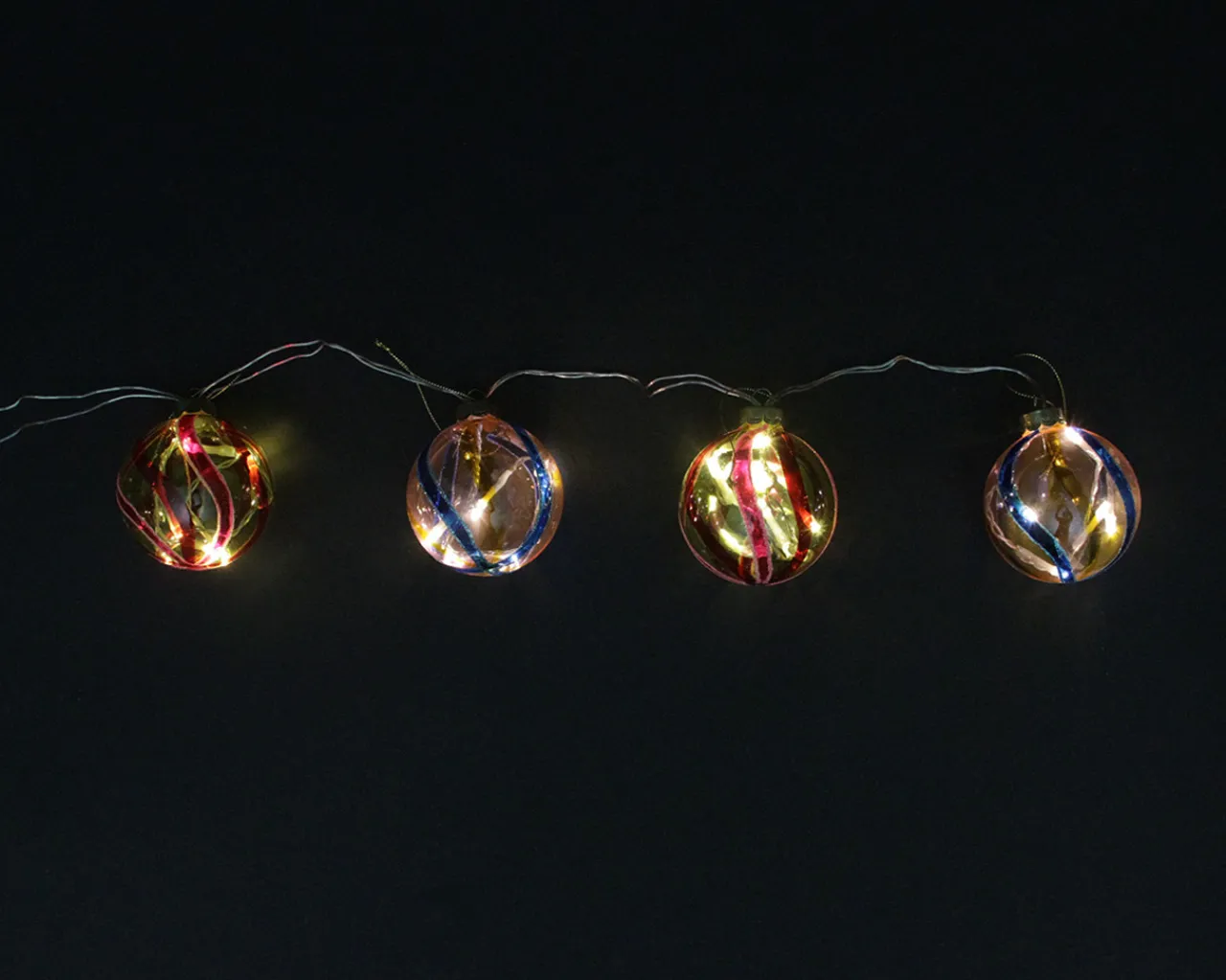 - 4 Count Prelit Swirl Glass Christmas Ball Ornaments