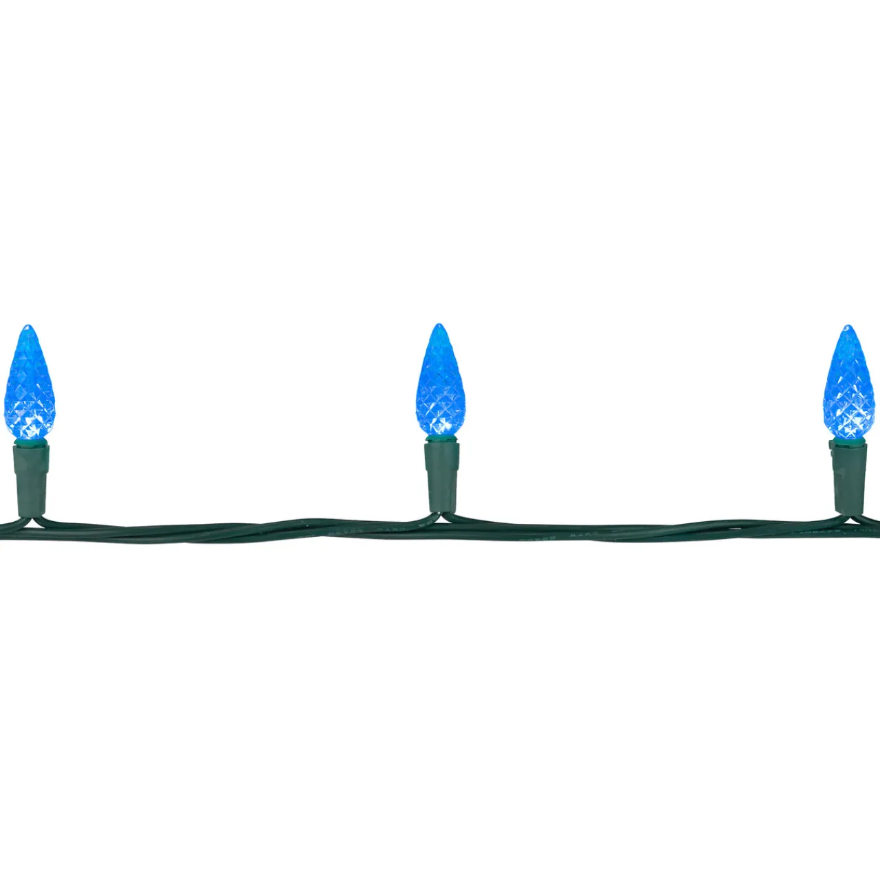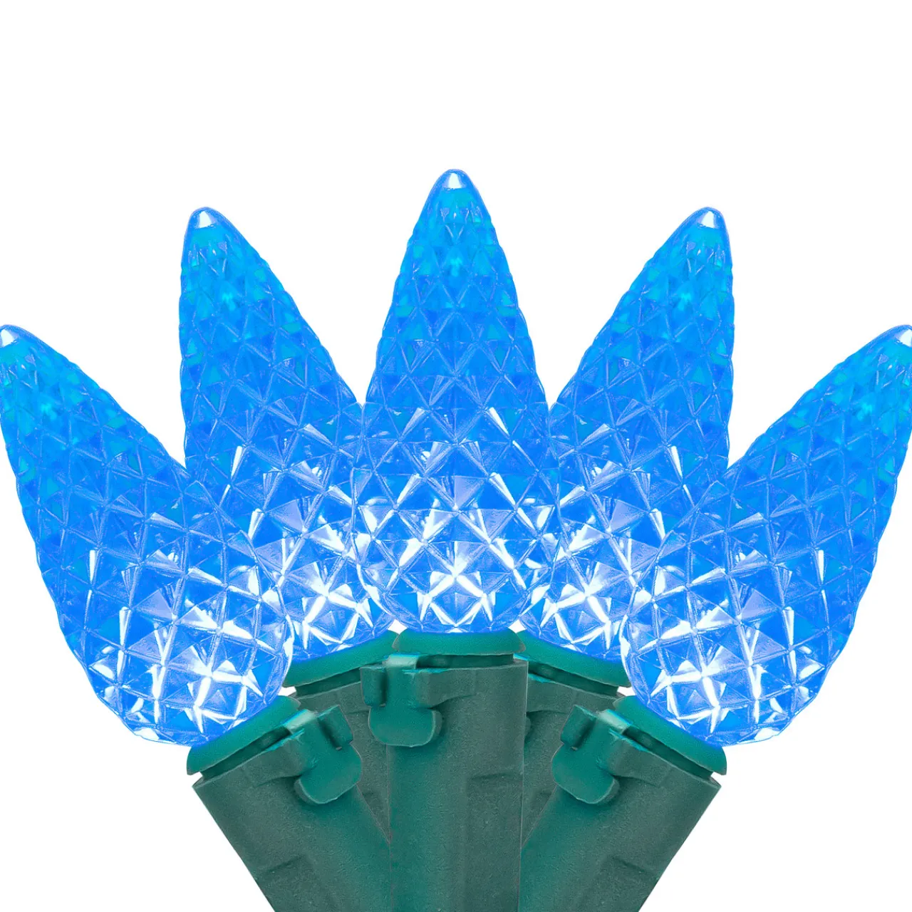 - Blue Faceted Led C6 Christmas Lights With Green Wire