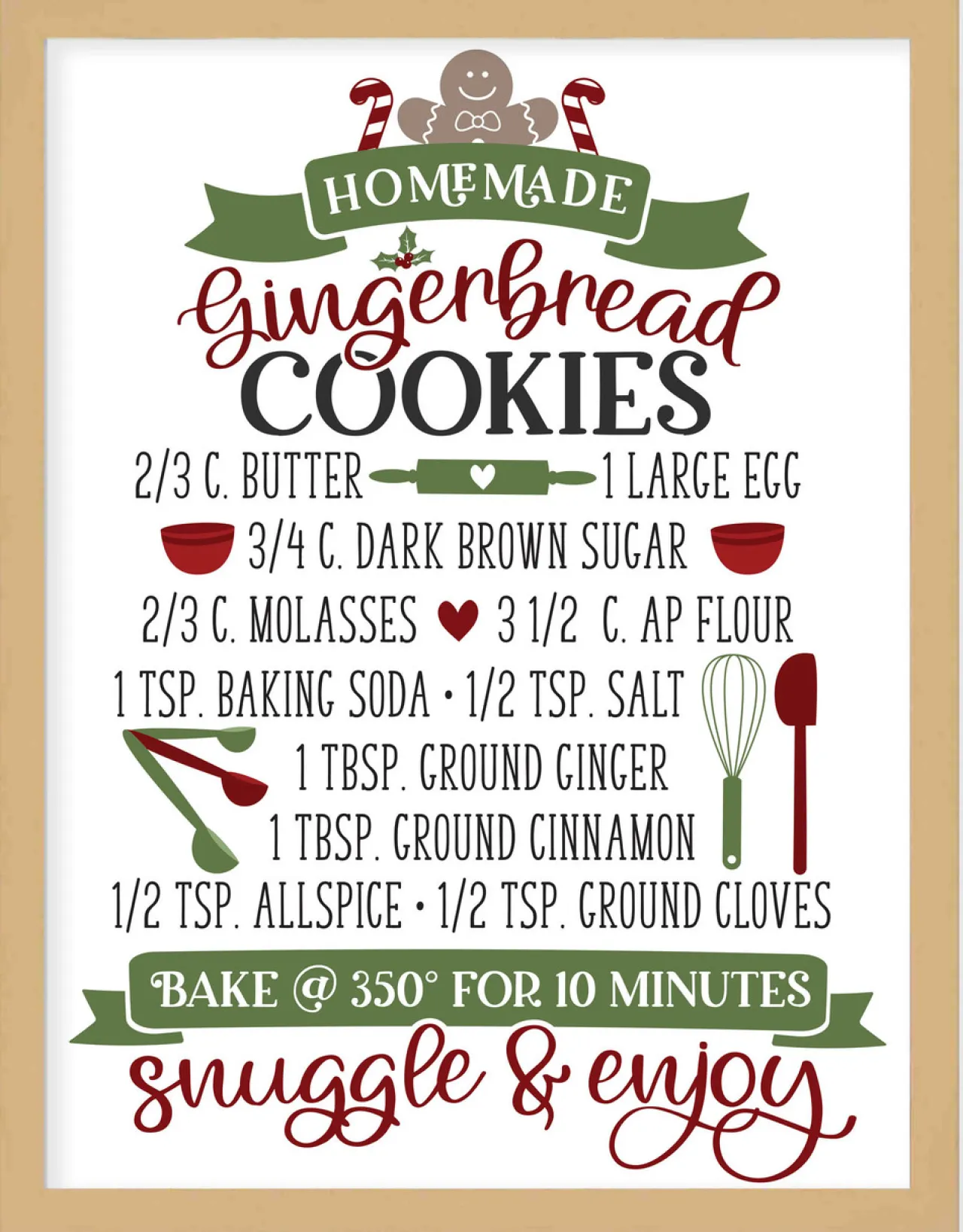 - 13.5″ x 17.5″ Gingerbread Cookie Recipe printed sign on musuem quality matte paper with archval inks.