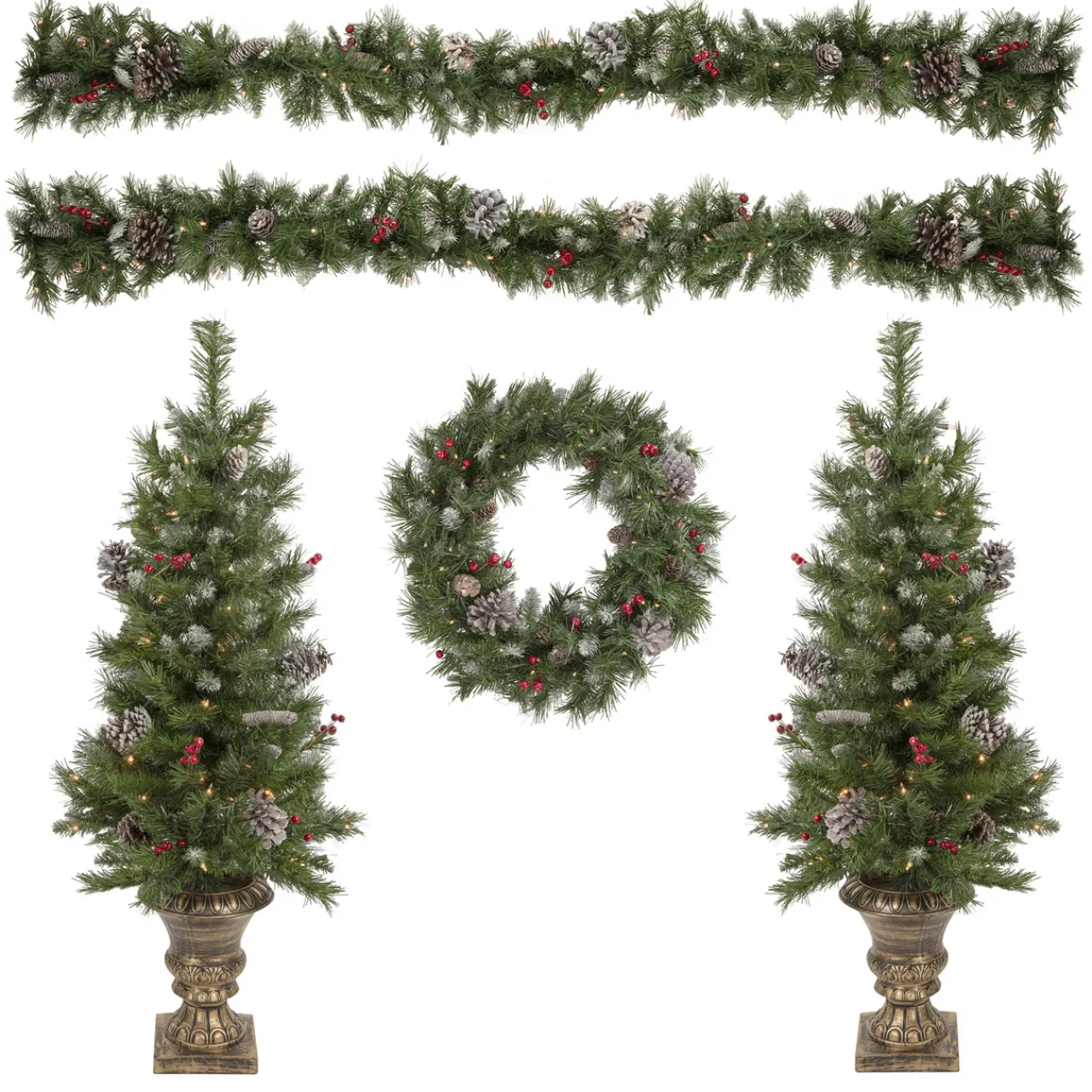 - Frosted Verona Berry Pine Artificial Christmas Entryway Trees, Garland And Wreath Set