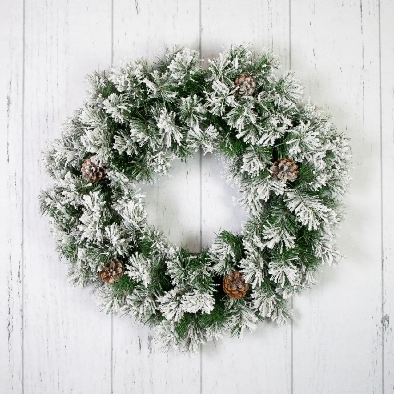 - Green Flocked Angel Pine Artificial Christmas Wreath