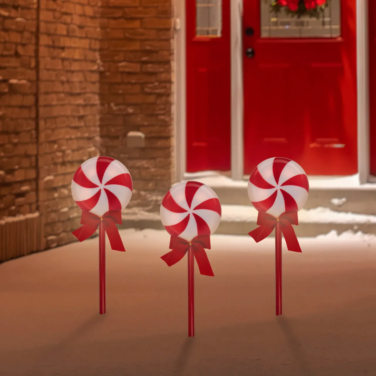 - Set Of 3 Peppermint Candies Christmas Pathway Markers